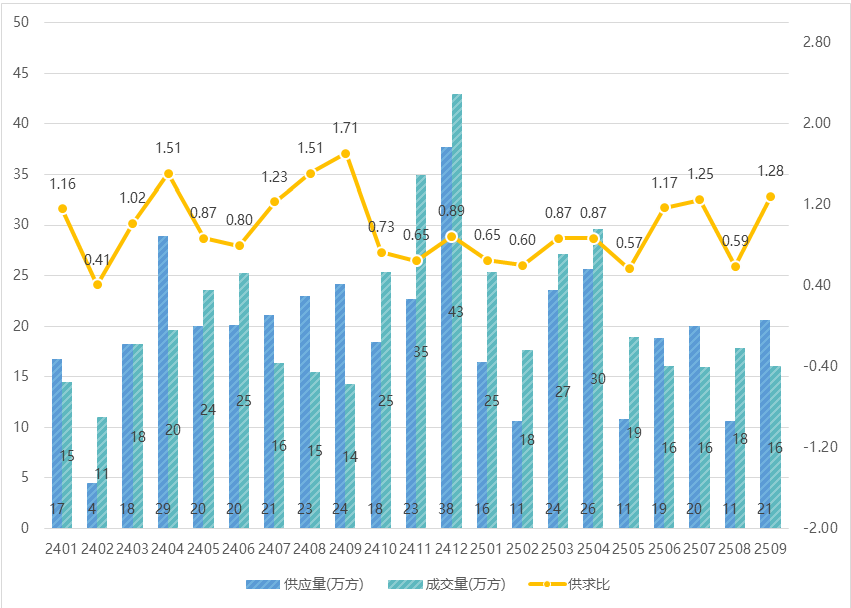 1、住宅市场→2025年8-9月合肥市区住宅供应面积31.27万方,成交面积33.95万方,供求比0.92...