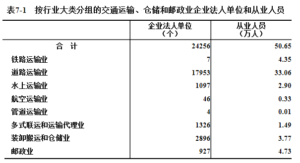 七、交通运输、仓储和邮政业