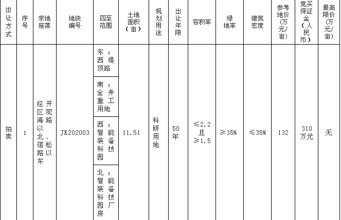 经开区JK202003号地块位于观海路以北、宿松路以东,面积11.51亩,竞买人须为注册资本金不低于2亿元人民币的公司法人。
