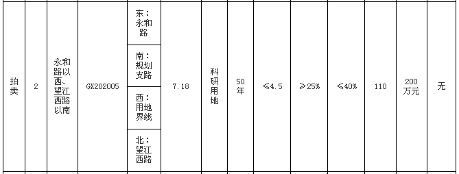 高新区GX202005号地块位于永和路以西、望江西路以南,面积7.18亩,竞买人须为注册资本金不低于10亿元人民币的公司法人。