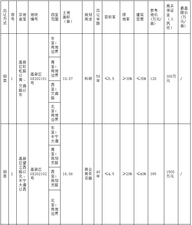 4、高新区GX202102号地块竞得人须在土地成交后7个工作日内,向高新区管委会提供引入一家房地产开发企业文旅地产公司区域总部及上市总部入驻本地块的承诺。如未能按时提供上述材料的,取消竞得资格,竞买保证金不予退还。