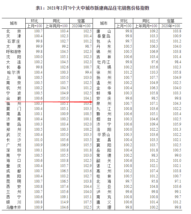 2月70城房价出炉!合肥新房销售价格指数环比上涨0.6%!