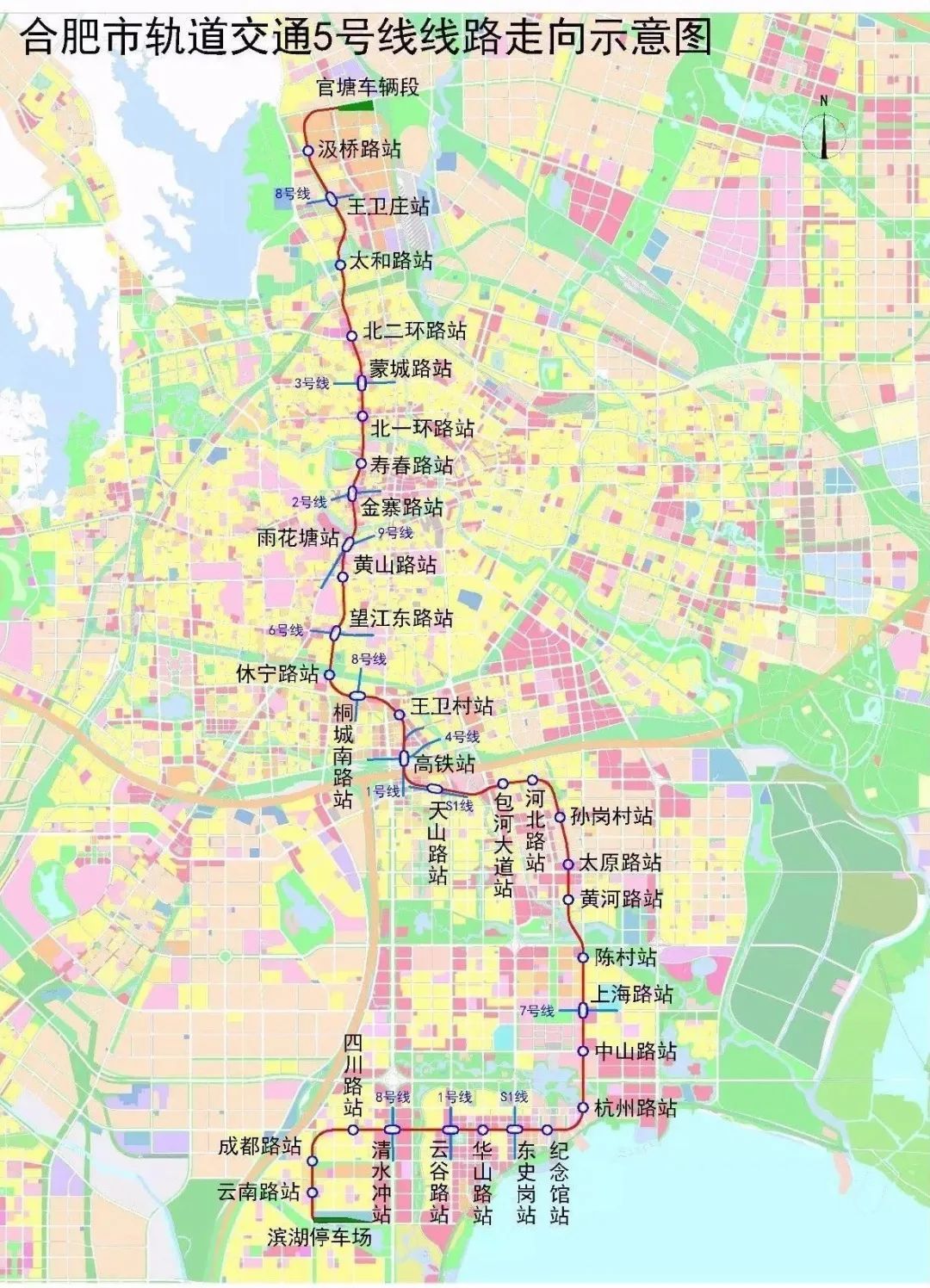 5号线是一条南北向线路,将庐阳区、蜀山区、包河区几大区串联起来,也是庐阳直达滨湖的重要线路,