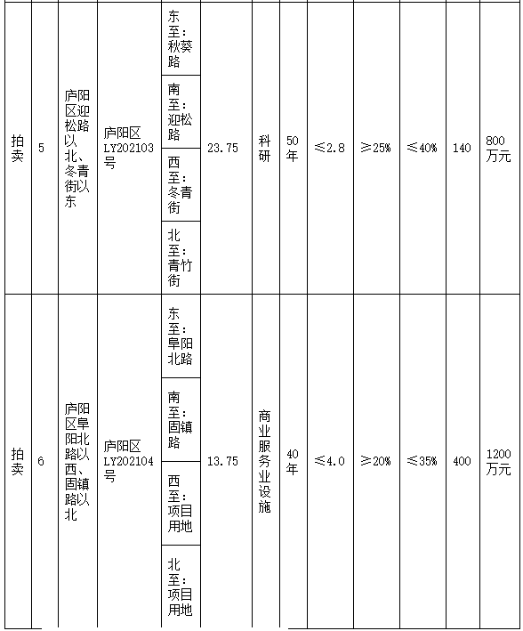 4、庐阳区LY202102号地块竞买人须为注册资本金不低于5亿元人民币且主营业务为国际班列运营的企业法人。