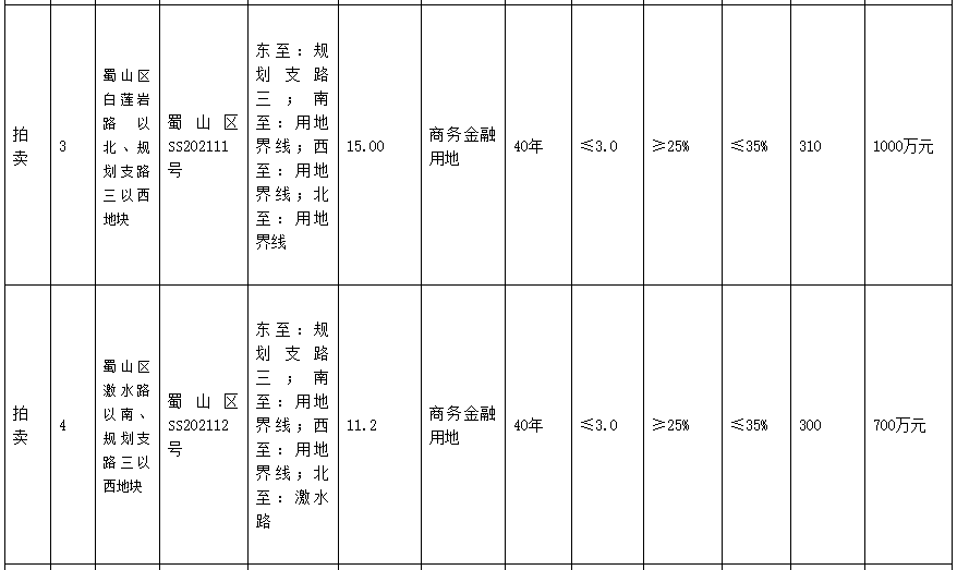 2、蜀山区SS202110号、蜀山区SS202115号、经开区JK202109号地块竞买人须为注册资本金不低于3亿元的企业法人。