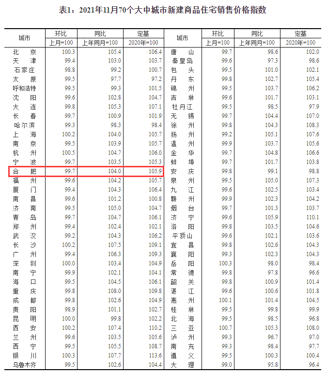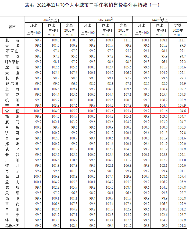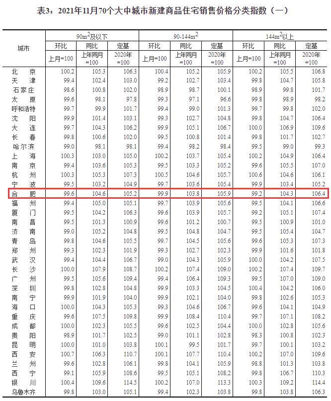 刚刚,国家统计局发布今年11月全国70个大中城市商品住宅销售价格变动情况。合肥新建商品住宅和二手住宅销售价格环比分别下降0.3%和0.1%。国家统计局城市司首席统计师绳国庆对此进行了解读。