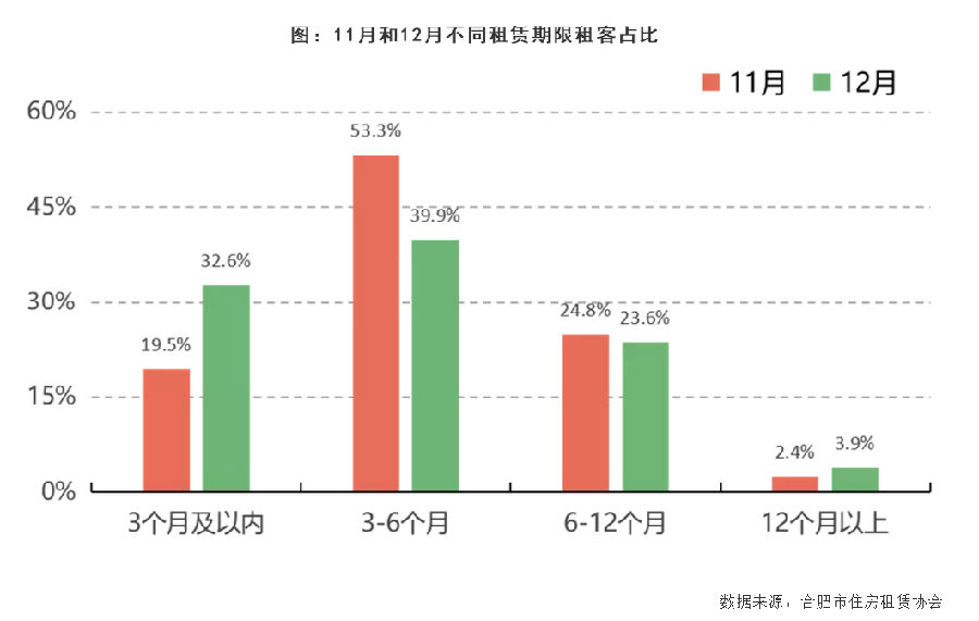 新出租套数环比下降20.3%,连续三个月下滑;滨湖新区长租公寓空置率最高,高达30.4%;32.6%的租客租赁期限在3个月及以内……2021年1月起,合肥市住房租赁协会在全市范围内选定部分具有代表性的集中式租赁住房项目,建立月度调研机制,开展月度租赁指数调研活动。1月14日,记者了解到,2021年12月集中式项目月度运营简报发布。