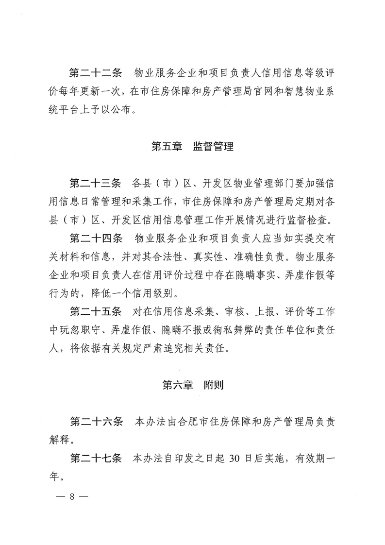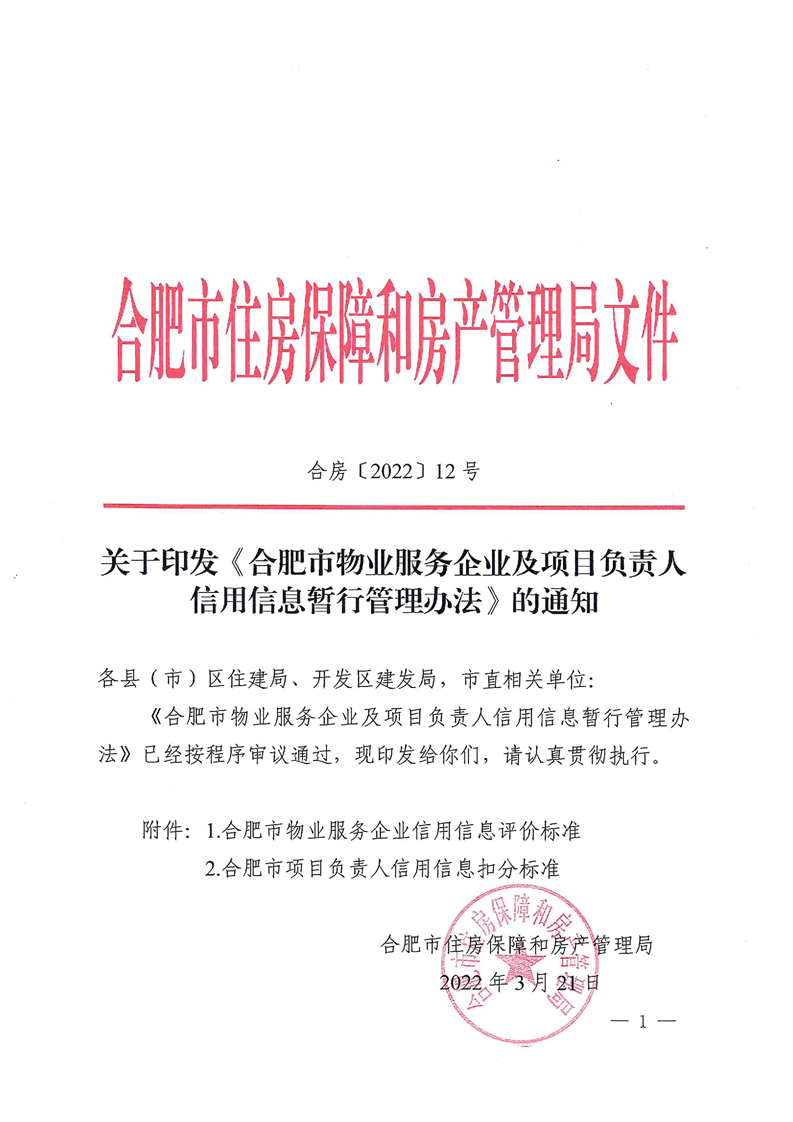 近日,合肥市住房和房产管理局印发关于印发《合肥市物业服务企业及项目负责人信用信息暂行管理办法》的通知。《办法》指出,主管部门将对物业服务企业和项目负责人的信用状况进行综合评定,并按参评企业数信用信息得分将物业公司分为AAA至E七个信用等级,其中D级(含)以下的物业服务企业将被列入重点监管对象。