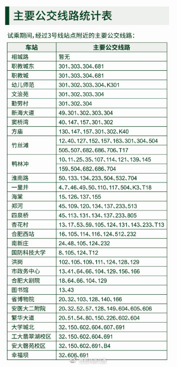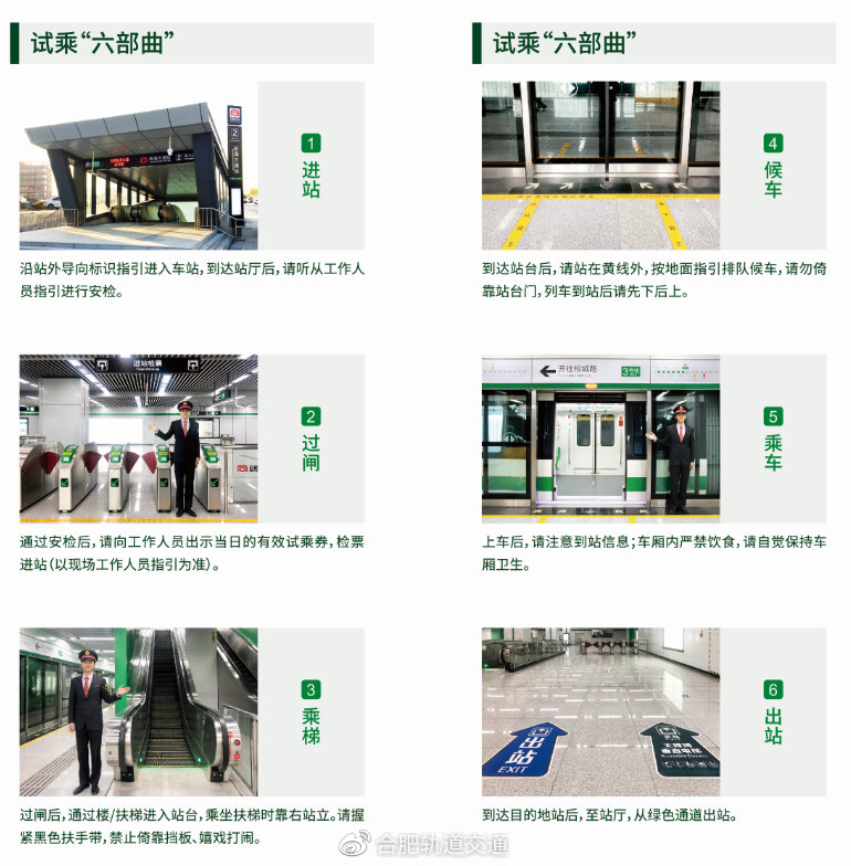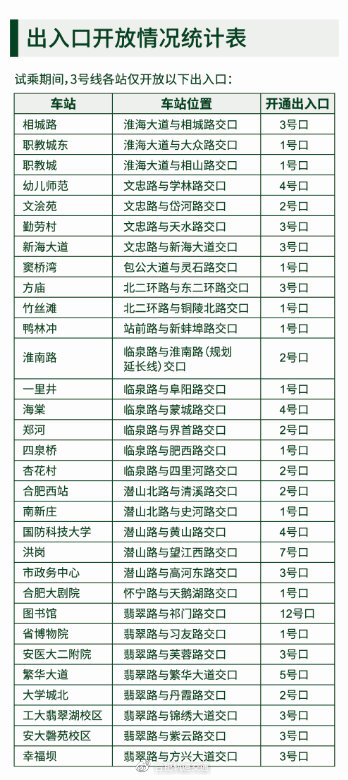 请广大乘客提前下载“合肥轨道”APP,并开通合肥轨道乘车二维码。使用“合肥轨道”APP扫码进出3号线,进出站不产生费用,不参与本次试乘活动的两个站点不具备该功能。