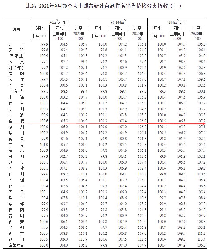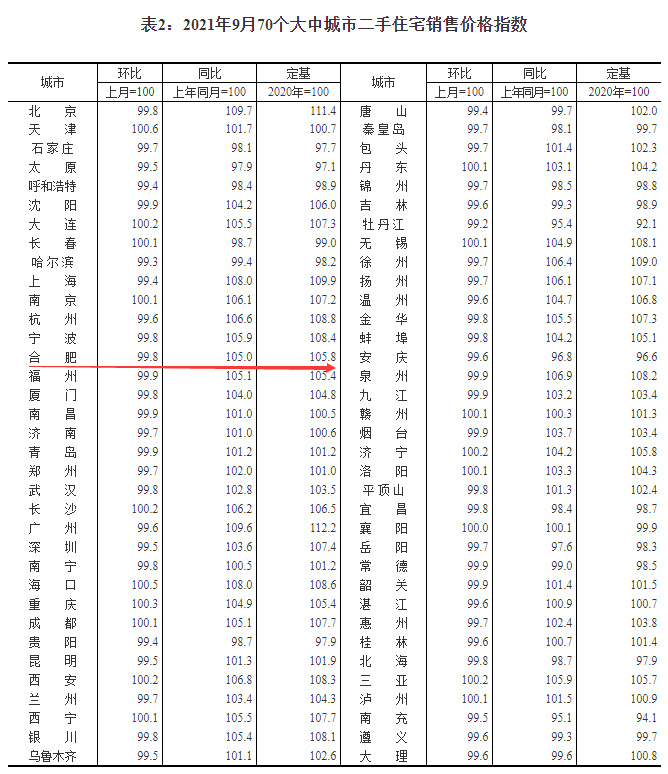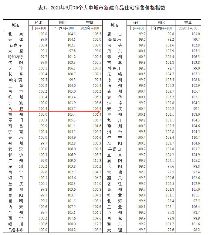 刚刚,国家统计局发布2021年9月份70个大中城市商品住宅销售价格变动情况。合肥新房销售价格指数环比上涨0.4%,同比上涨5.7%;二手房销售价格指数环比下降0.2%,同比上涨5%。国家统计局城市司首席统计师绳国庆对此进行了解读。