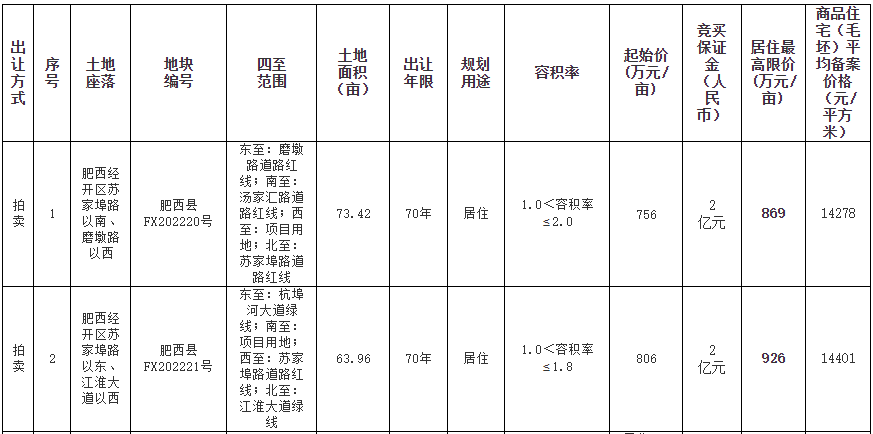 5、肥西县FX202220号、FX202221号、FX202222号地块采取“投报高品质住宅方案”的拍卖方式。即:“价高者得+投报高品质住宅建设方案+摇号”,具体为: