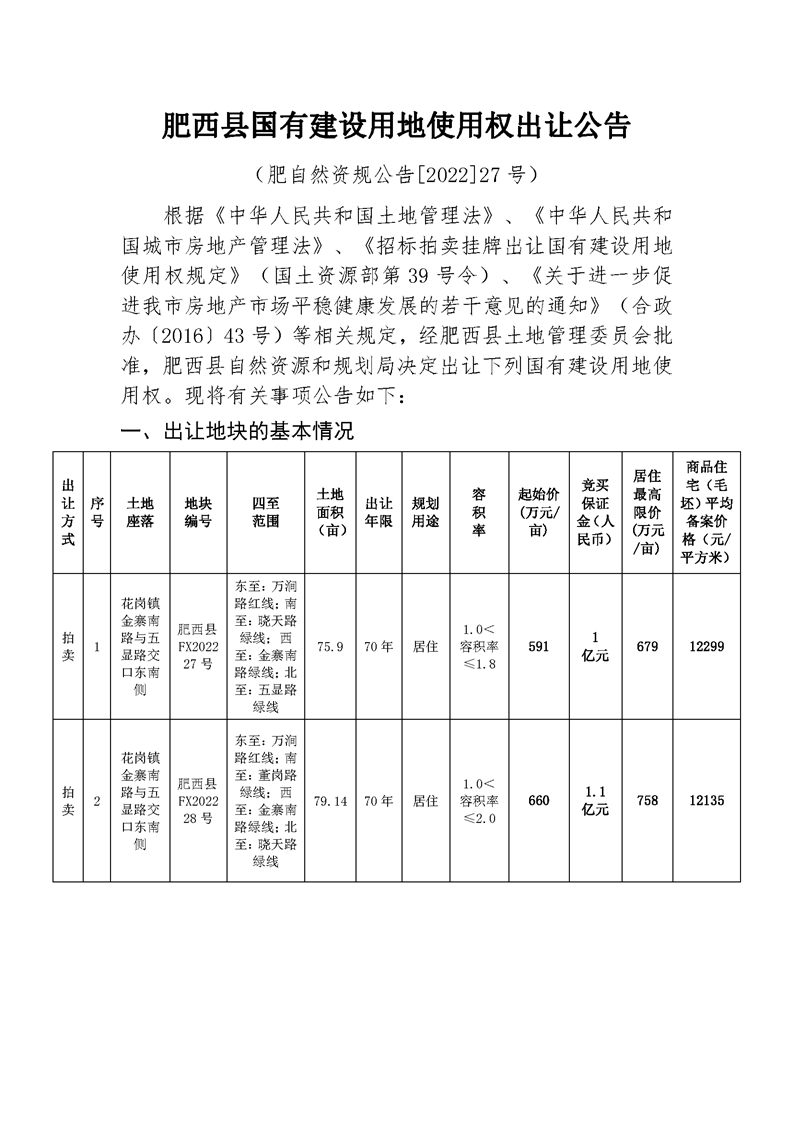 近日,肥西县自然规划局新增4宗涉宅用地挂网,暂定5月18日土拍,值得注意的是本次同样采取“投报高品质住宅方案”。详情如下:
