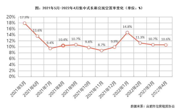 5月12日,合肥市住房租赁协会发布2022年4月集中式项目月度运营简报。4月共调研了25家住房租赁企业和72个集中式长租公寓项目。受近期疫情影响整体签约套数环比下降25.9%,空置率最低的区域是四县一市,空置率仅为3.9%。其次为高新区和蜀山区,空置率分别为4.4%和7.2%。