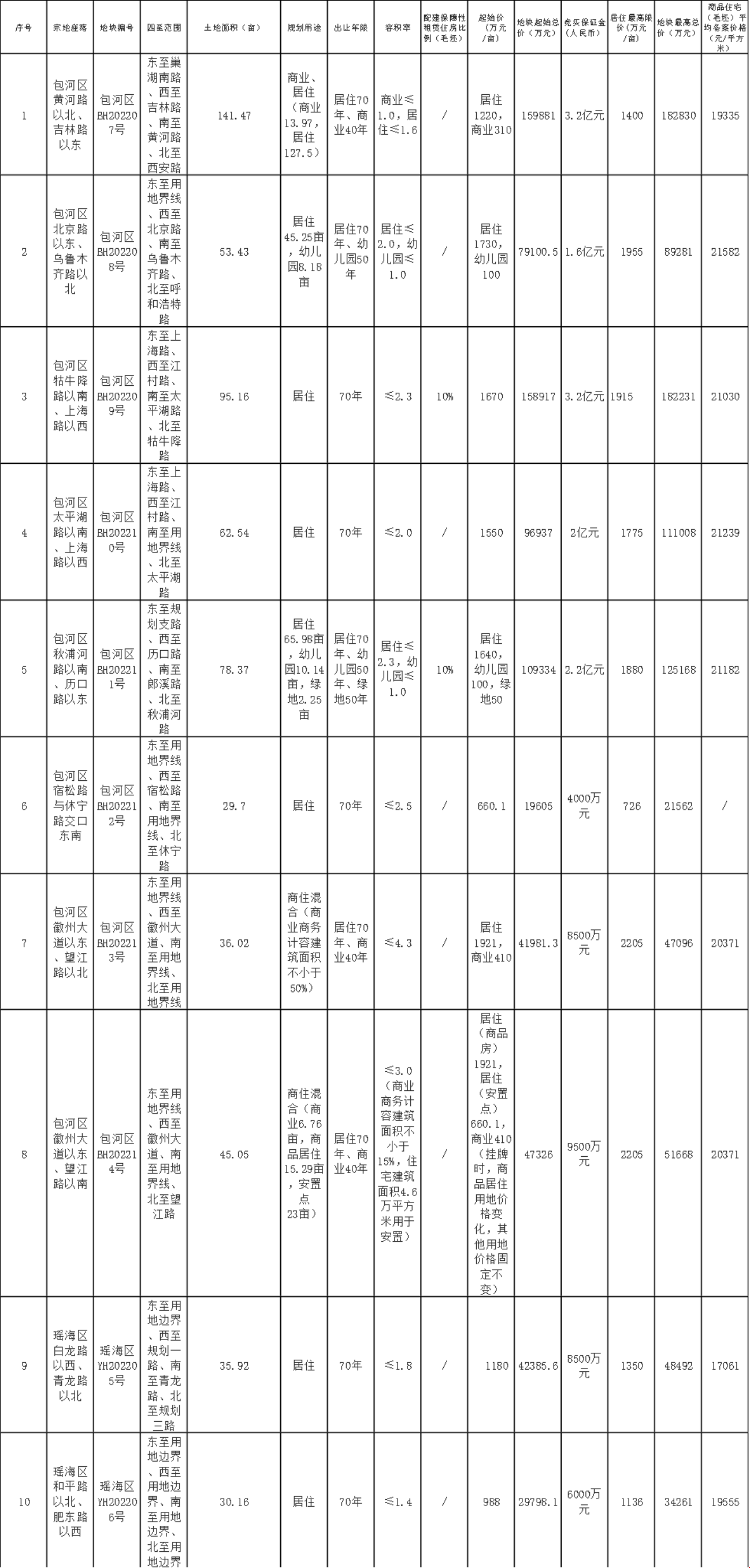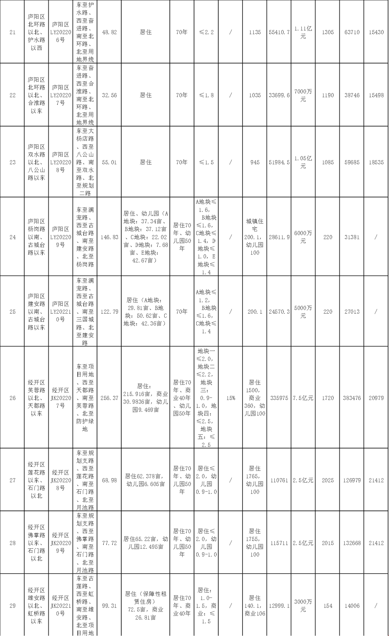 备注:宗地面积以实测为准,宗地规划指标详见地块规划设计文件。挂牌时,以上地块(不含包河区BH202214号)居住用地价格变化,其他用地价格固定。按照亩均单价报价,增价幅度为1万元/亩/次。