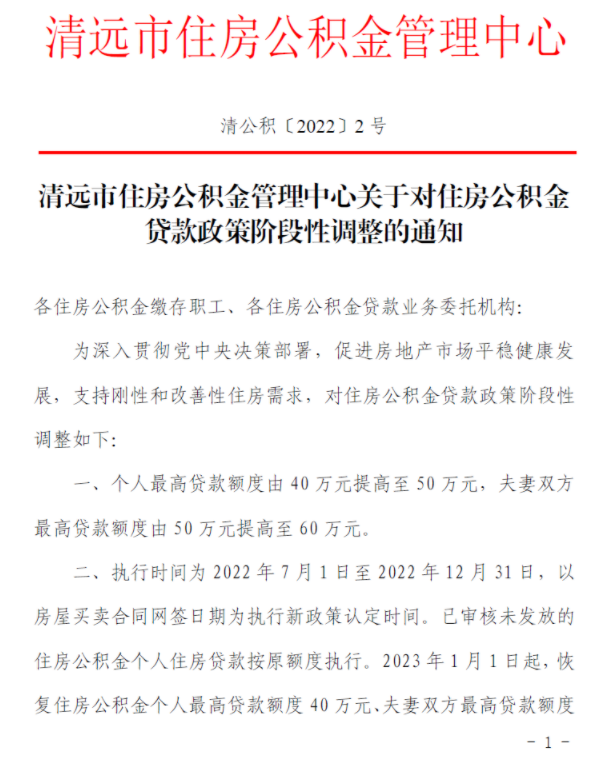 近日,清远市出台《关于对住房公积金贷款政策阶段性调整的通知》。