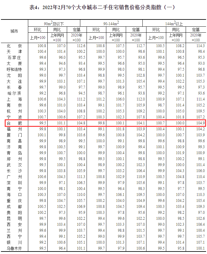 刚刚,国家统计局发布今年2月全国70个大中城市商品房销售价格变动情况。其中,合肥新房价格环比下跌0.7%,同比上涨1.2%;二手房价格环比下跌0.3%,同比上涨0.5%。
