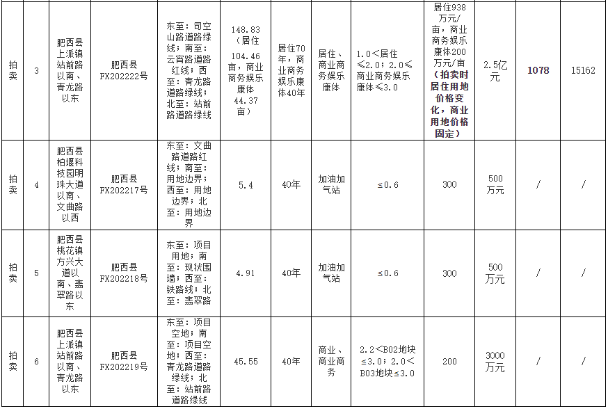 肥西县国有建设用地使用权出让公告