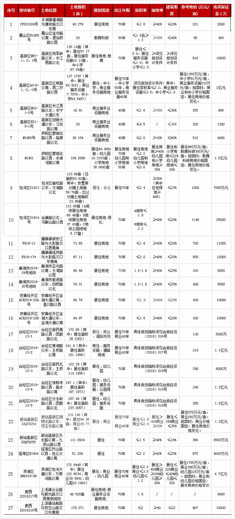 11月初的土拍已经落幕,出让的四宗地块均已顺利成交。月底还有一场土拍将强势来袭,有27宗地块上市拍卖,其中不乏有高新、包河、滨湖、庐阳等热门地块。