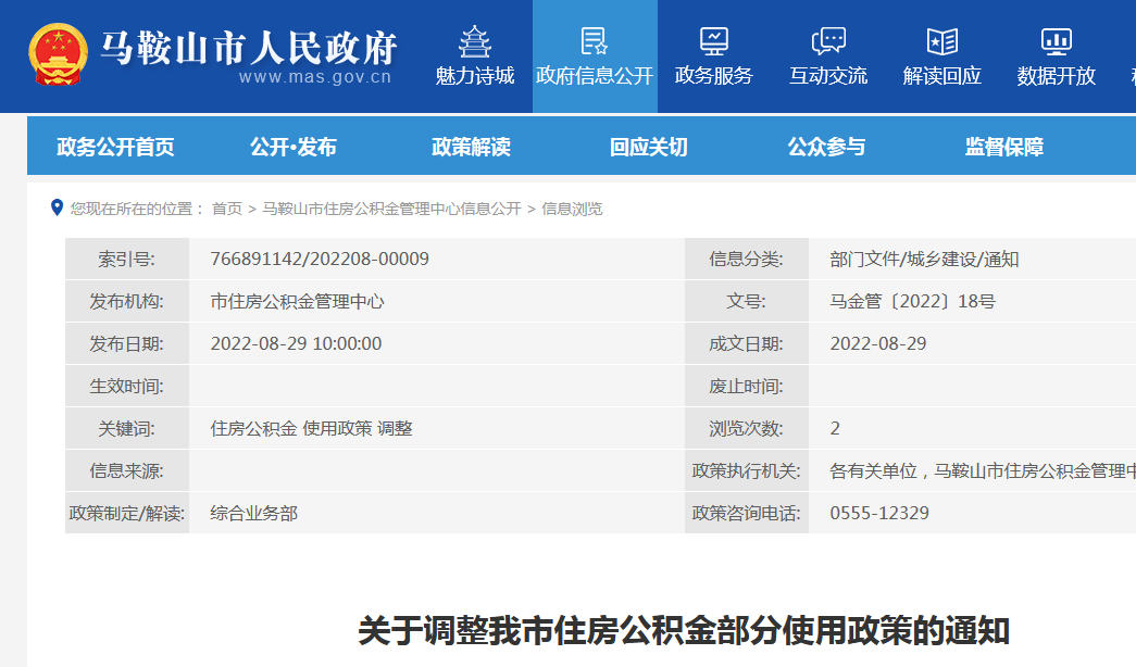 据马鞍山市人民政府网消息,8月29日,马鞍山市住房公积金管理中心发布通知,调整该市住房公积金部分使用政策。其中提出,子女购房可申请提取一次父母的住房公积金。